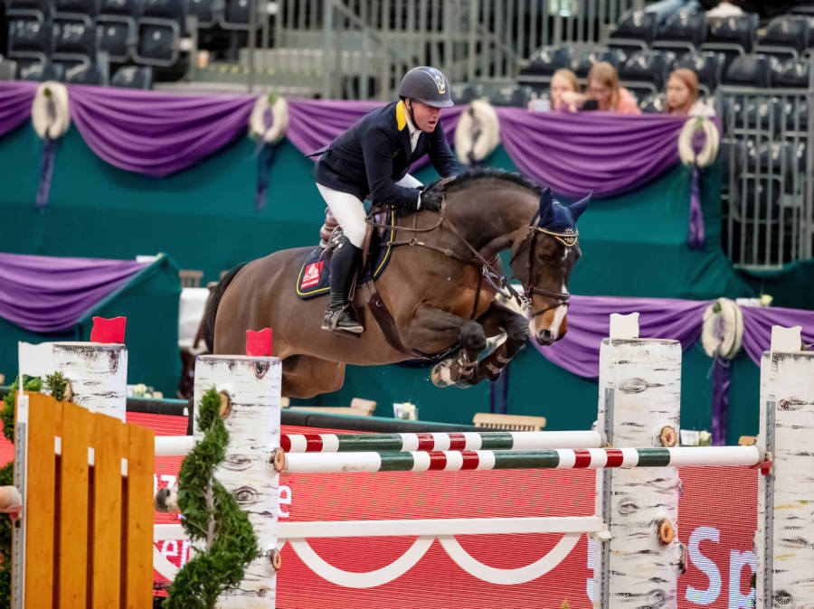 Propre fils de Baladine du Mesnil, grande gagnante internationale sous la selle de Olivier Guillon (ISO 181). En compétition maintenant avec le cavalier danois Theodor Linde.